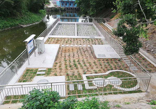 站点采用人工湿地处理技术,投资费用省,运行费用低,维护管理简便,出水水质较好。利用人工湿地种植的植物吸收污水中氨氮,磷等成分,长势迅猛,美化环境。