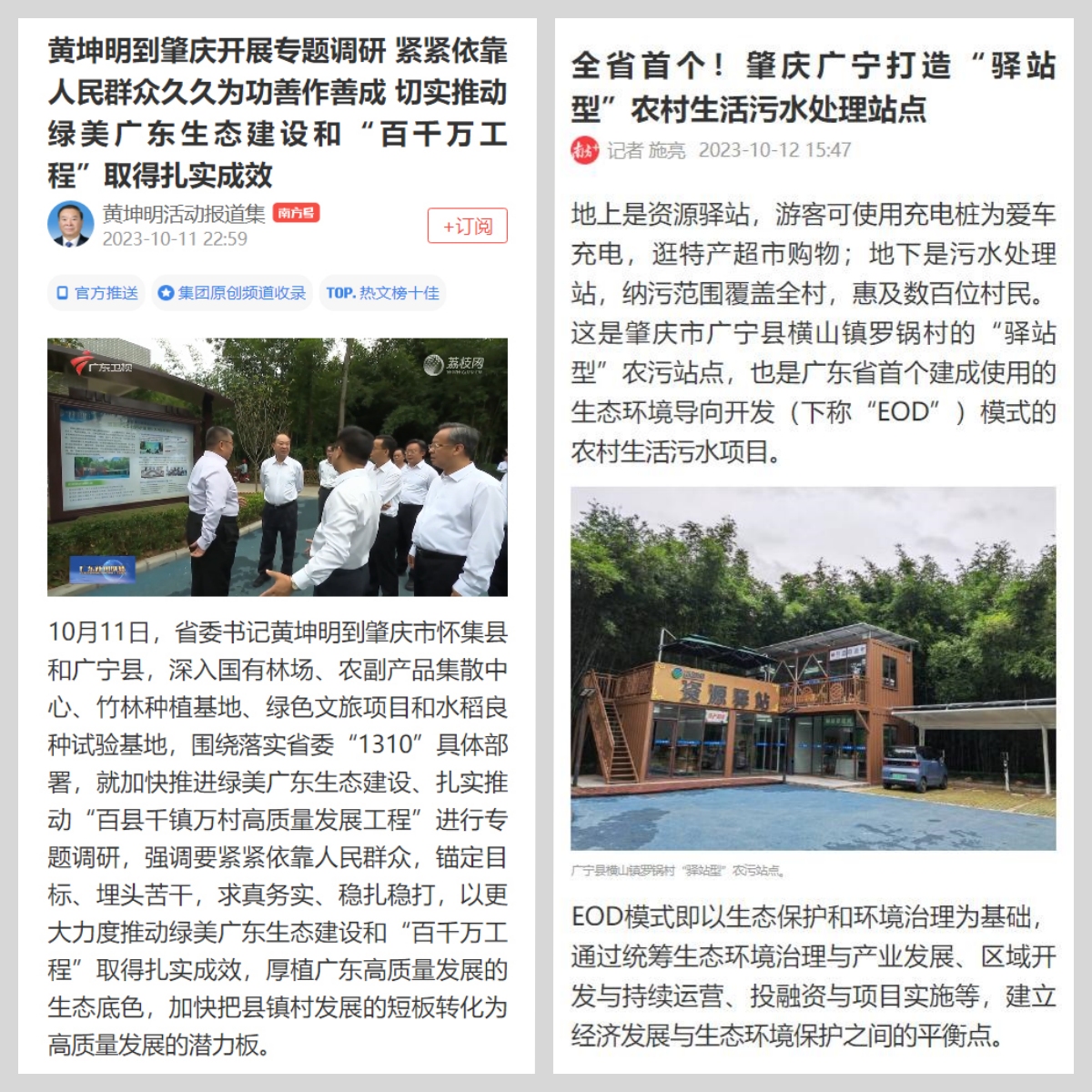 k8凯发驿站的实践探索和模式创新,受到省、市领导的高度关注。2023年10月,广东省委黄坤明书记亲自视察了广宁k8凯发驿站,给予了肯定。