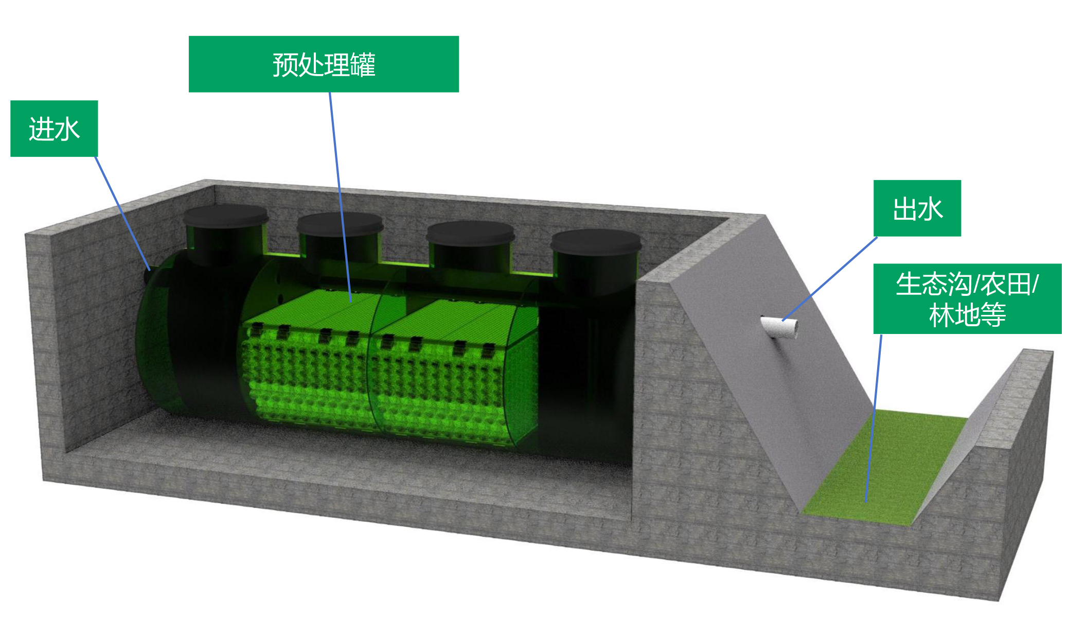 预处理罐(无动力): 适用于联户/连片k8凯发化利用 厌氧沉淀罐,内置填料,使生活污水通过预处理后k8凯发化利用 适用条件:服务常住人口:5户~114人;处理规模3吨、5吨、8吨三个规模。 现场条件:受纳体地势较低,预处理出水可自流进入受纳体利用,不会因受纳体造成预处理罐及管网雍水。 特点:无动力,占地小、埋深浅、选址灵活。 | ![]() |