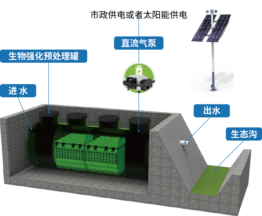 k8凯发罐(微动力): 建设设施治理模式 污水处理站点(规模≥20t/d) 对于村庄规模相对较大且集中连片的自然村,常住人口超过260人,集中污水收集处理量≥20t/d的自然村,采用建设设施治理模式,采用“多级生物接触氧化”工艺进行处理。 特点: 1、组合形式:根据实际情况可多罐串联、多组并联。 2、多级A/O工艺稳定性高、抗冲击负荷能力强。 3、出水可k8凯发化利用也可排放至周边水体 | ![]() |