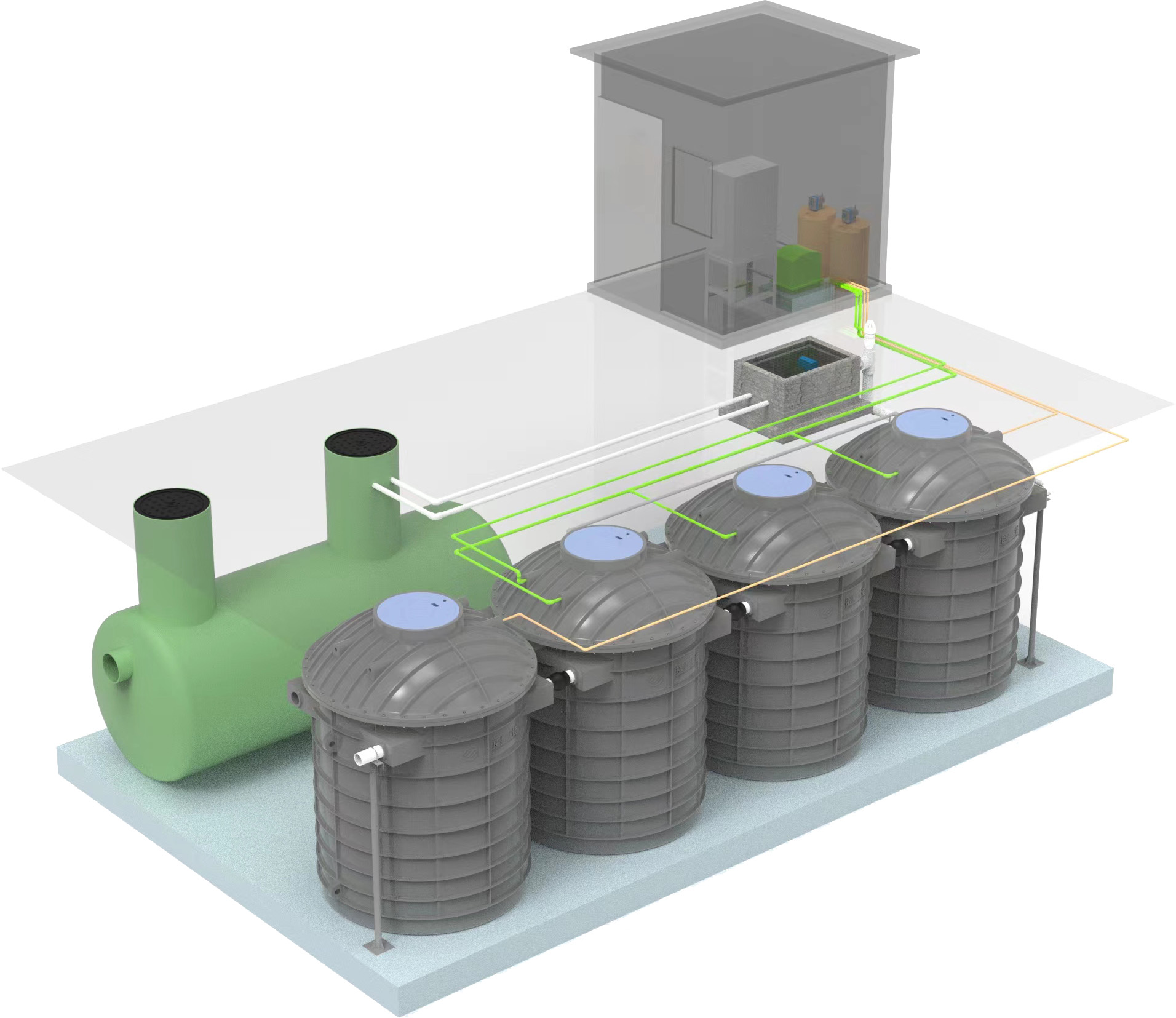 强化预处理罐(微动力): 适用于联户/连片k8凯发化利用 包含隔渣与沉淀区、生化区、清水区三级池体,污水经预处理罐处理后进入清水区,通过提升泵将清水提升输送至k8凯发化利用受纳体。 适用条件: 服务常住人口:6户~114人;处理规模3吨、5吨、8吨三个规模。 现场条件:受纳体地势平坦或较高,处理出水无法自流进入受纳体利用,需要提升后接入受纳体。 特点:1、占地小、埋深浅、选址灵活;2、微动力间歇好氧生物强化技术;3、出水不黑不臭,农民易于接受入园。 | ![]() |